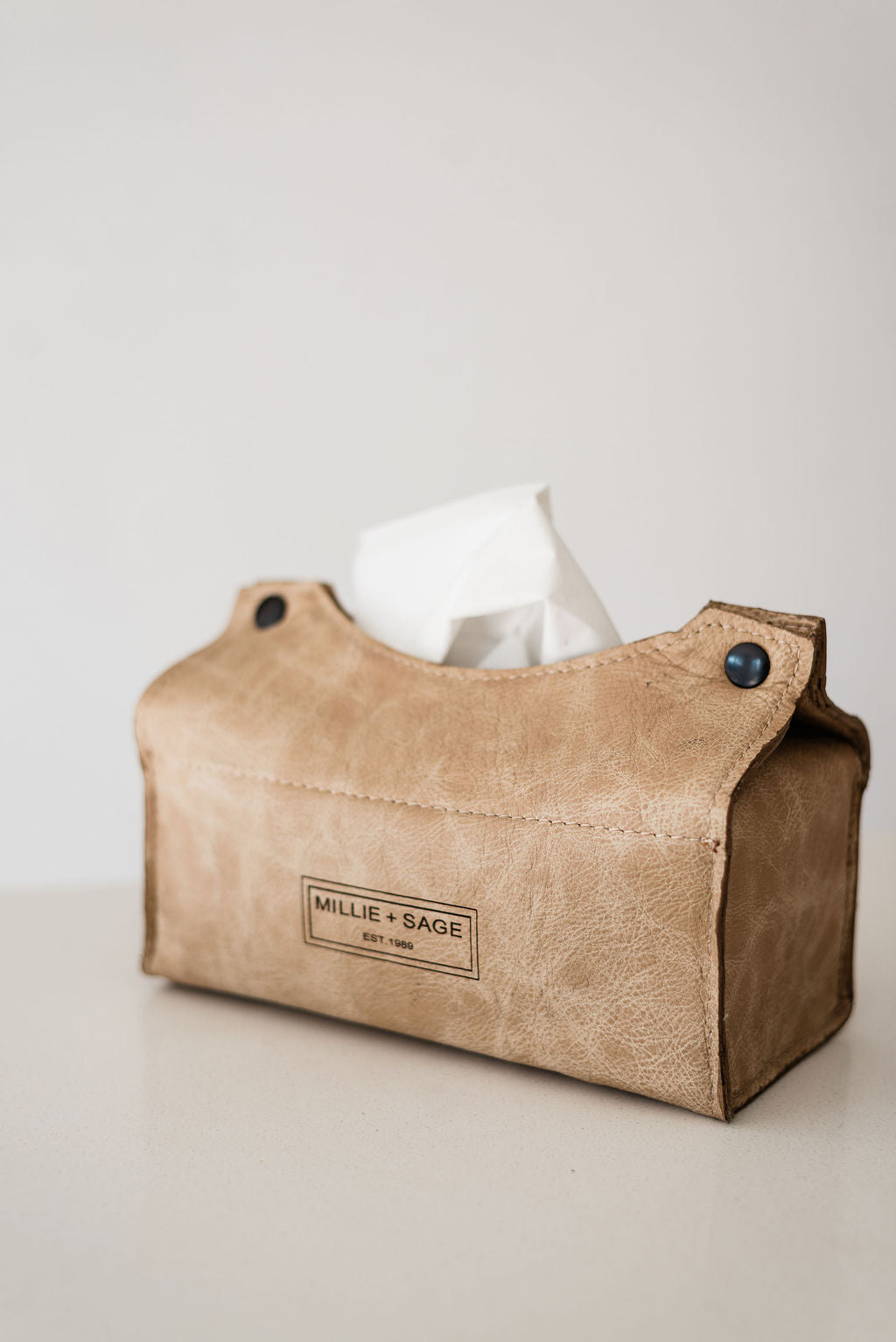 Our Leather Tissue Box Cover made from genuine leather padded and structured look to style beautifully in any space. Comes in Variety of neutral colours.